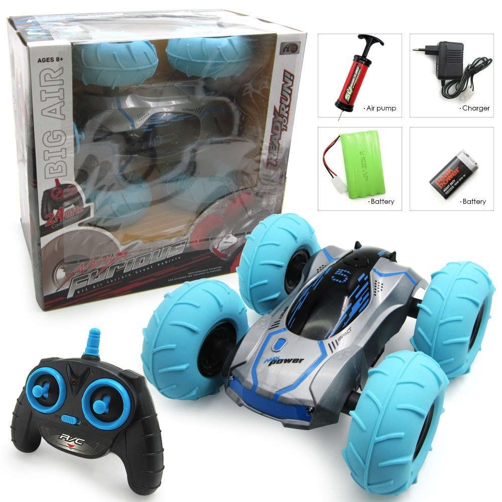 Hatalmas kerekű átfordulós autó, melynek keréknyomását te tudod beállítani a csomagban található pumpa segítségével. Kialakításának köszönhetően nem létezik akadály ez előtt a terepjáró előtt, ha a másik oldalára borul, ugyanúgy képes folytatni az útját!
