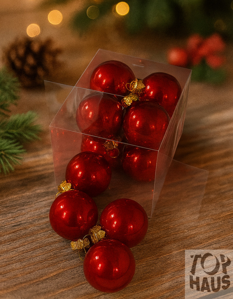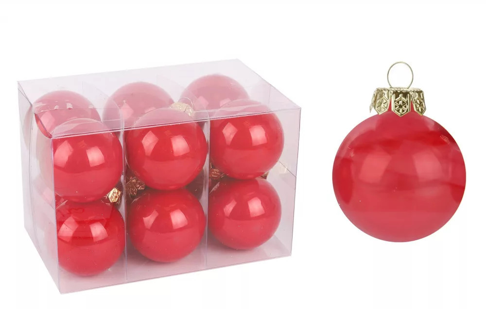 Élénkpiros karácsonyi üveg gömb 4cm, 12/csomag